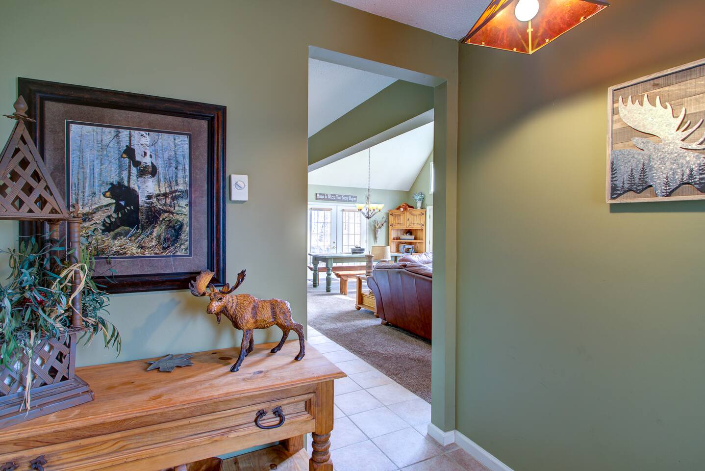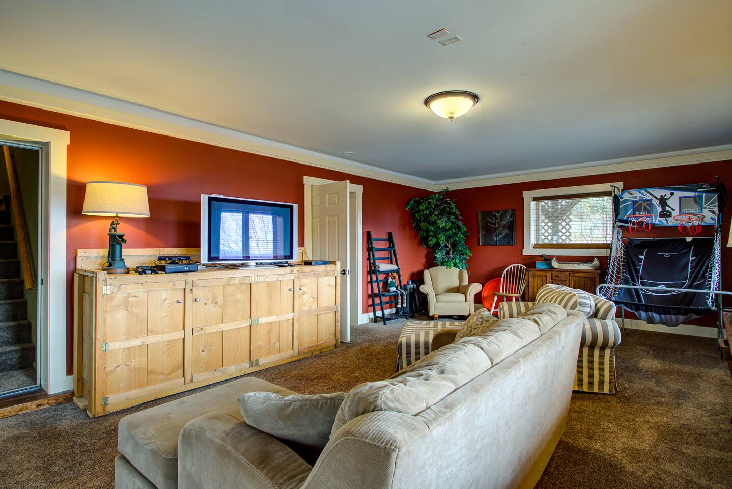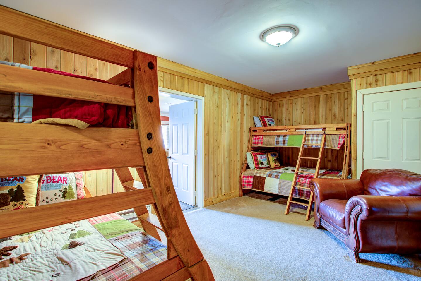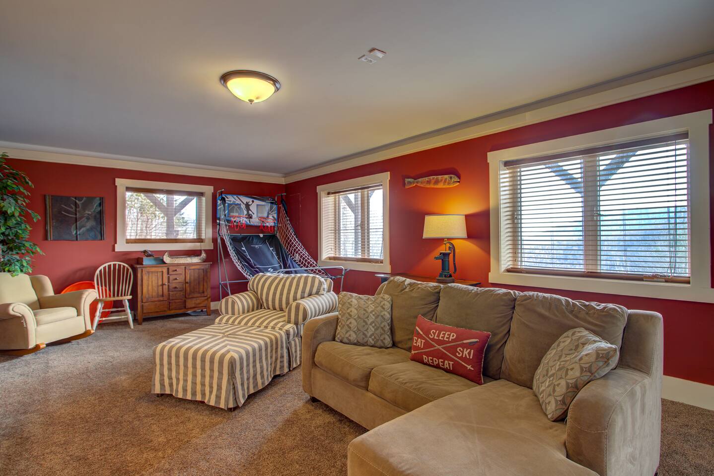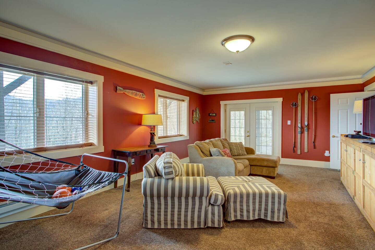 Moose Lodge has 3 BR / 3 BA, located centrally located between Boone and Banner Elk and is walking distance (1 Mile) to Hawks Nest Snow Tubing. This property can sleep up to 12 guests and is geared towards families/friends looking for an enjoyable getaway! The main floor has an open floor plan with high ceilings that showcase our beautiful view. The kitchen is fully stocked with supplies needed to cook for every family member. The master bedroom (king bed + twin bed) with private en suite bathroom is also located on the main floor. Upstairs you will find a bedroom with a queen bed and private en suite bathroom. The basement offers an additional living area with an arcade basketball hoop, video games and board games for all of the guests to enjoy. The bedroom in the basement has two sets of bunk beds (Full/Twin + Full/Twin) with a private en suite bathroom. Enjoy time outside on the deck or around the fire pit, both of which have beautiful seasonal views of Grandfather Mountain. *Our home has a very steep driveway so we highly recommend AWD/4WD or chains on tires for guests staying during the winter months*